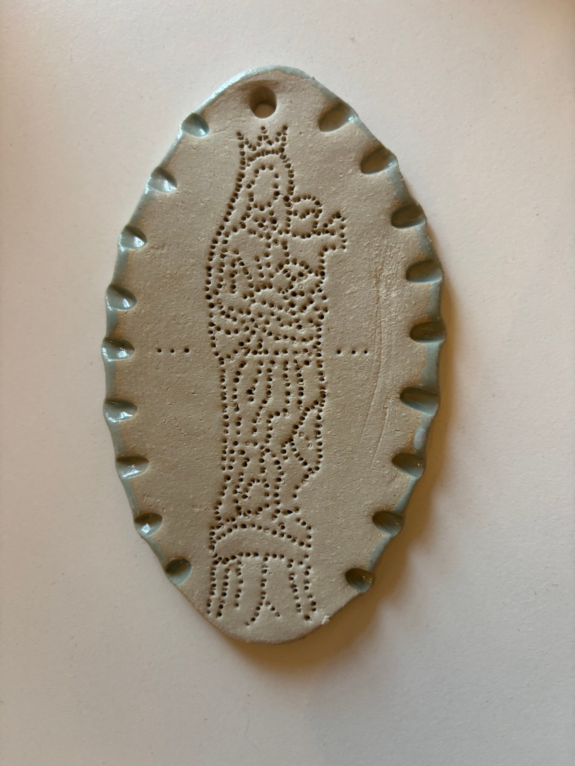 Médaillon céramique - grès - contour émaillé bleu vert clair