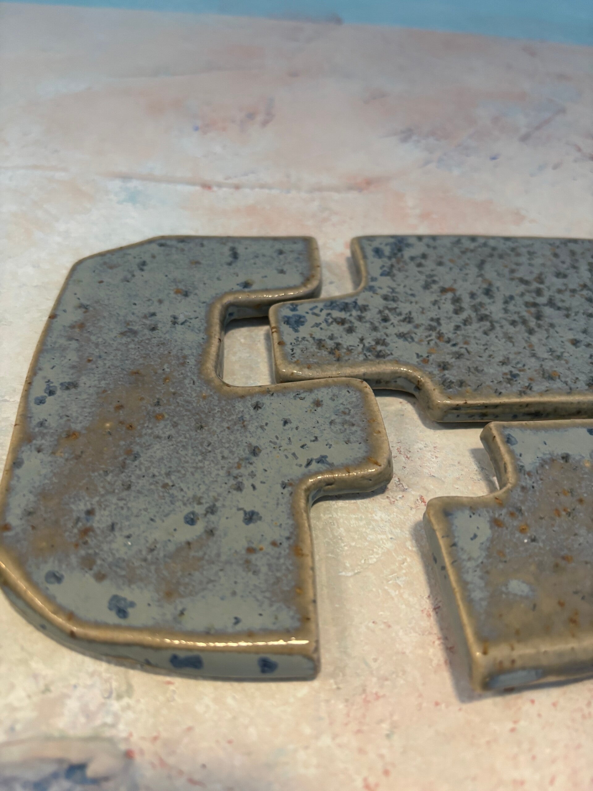 Décor mural céramique en 4 pièces. grès émaillé bleu tacheté.