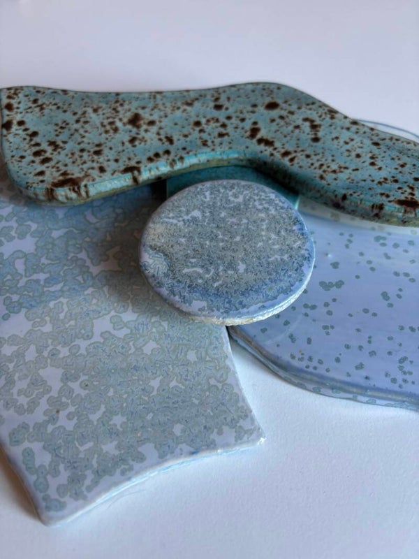 blanc et nuances de bleus. Émail brillant.